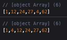 배열의 요소를 기본 정렬 순서에 따라 정렬한 후 그 배열을 반환합니다. 기본 정렬 순서는 문자열의 유니코드를 따르며 매개변수를 주면 정렬 순서를 원하는 대로 변경할 수 있습니다.